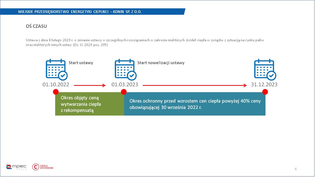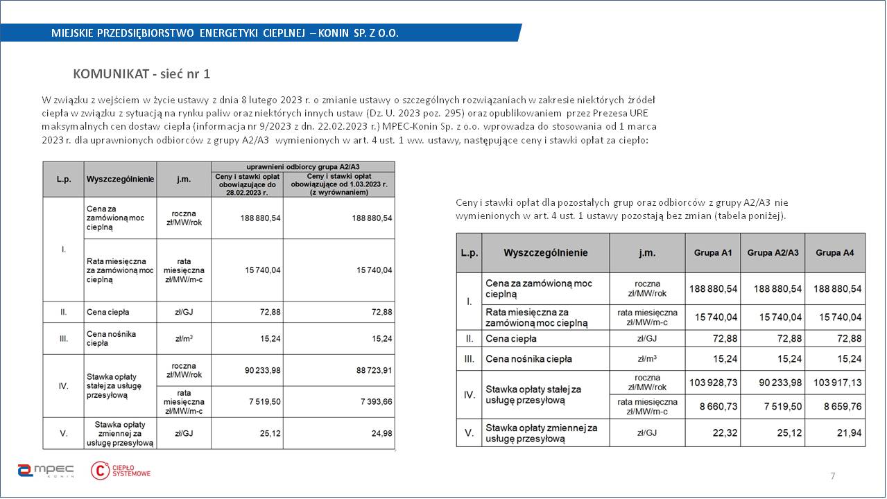 6 marca 2023 r. odbyło się spotkanie prezesa MPEC-Konin Sp. z o.o. z prezesami konińskich spółdzielni mieszkaniowych oraz zarządcami budynków dotyczące nowych regulacji ustawowych w kwestii cen ciepła. Prezes Sławomir Lorek przedstawił mechanizm maksymalnej ceny ciepła wynikający z ustawy z dnia 8 lutego 2023r.  o zmianie ustawy z dnia 15 września 2022r.  o szczególnych rozwiązaniach w zakresie niektórych źródeł ciepła w związku z sytuacją na rynku paliw oraz niektórych innych ustaw. Określono zakres obiektów mogących skorzystać ze wsparcia określonego w ustawie, jak również poziomy wsparcia dla przykładowych obiektów. O godzinie 13:00 odbyła się również konferencja prasowa poświęcona regulacjom wynikającym z wyżej wymienionych ustaw oraz ich wpływem na ceny ciepła dla mieszkańców Konina.