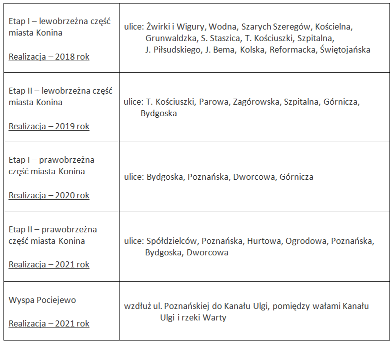 6 marca 2018 roku MPEC–Konin Sp. z o.o. zawarł z Narodowym Funduszem Ochrony Środowiska i Gospodarki Wodnej w Warszawie umowę na dofinansowanie projektu „Przebudowa systemu ciepłowniczego miasta Konina”. W latach 2018–2021 zostało i zostanie wykonanych 16 zadań przebudowy systemu ciepłowniczego, mających na celu optymalizację przewymiarowanych sieci magistralnych.
