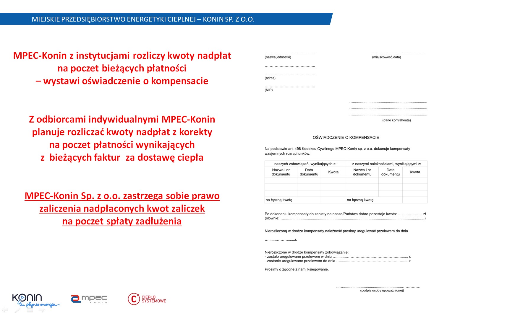 Podczas konferencji prezes zarządu MPEC-Konin Sp. z o.o. przedstawił w formie prezentacji zasady rozliczenia zaliczek za ciepło oraz symulację rozliczenia dla przykładowych odbiorców.