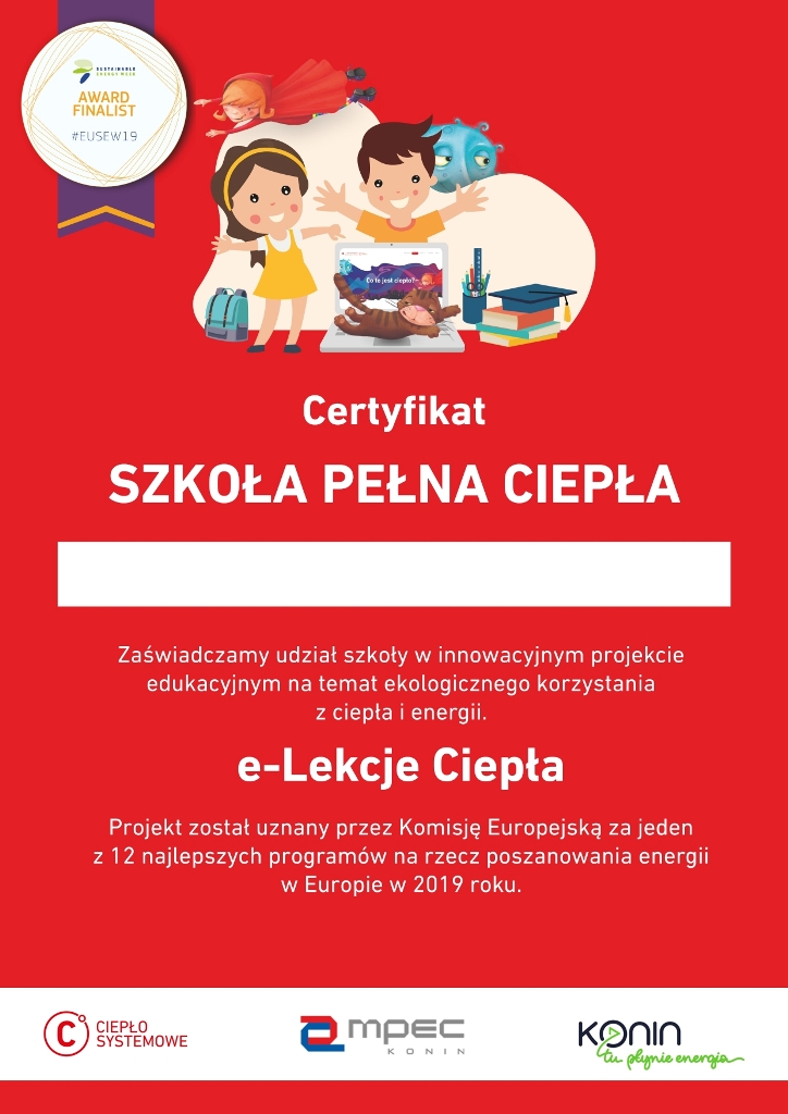 8 czerwca 2022 r. odbyło się w siedzibie MPEC-Konin spotkanie z udziałem koordynatorów projektu „Lekcje Ciepła” z konińskich szkół podstawowych. Przypomnijmy, że projekt wystartował jesienią ubiegłego roku z inicjatywy MPEC-Konin Sp. z o.o. jako lokalnego dostawcy ciepła systemowego. Pomysł został pozytywnie odebrany przez władze Konina a Prezydent Piotr Korytkowski objął go honorowym patronatem. W projekcie wzięło udział 10 szkół podstawowych, 28 klas trzecich, łącznie 617 uczniów. Na spotkaniu podsumowującym szkolni koordynatorzy i ciepłownicy wymienili się opiniami na temat projektu. Od następnego roku szkolnego planowane jest rozszerzenie projektu o klasy czwarte. MPEC-Konin aktualnie realizuje kolejny projektu z zakresu edukacji ekologicznej polegający na stworzeniu w siedzibie spółki przy ulicy Gajowej Sali Edukacji Ekologicznej na potrzeby nie tylko szkół konińskich, ale również placówek oświatowych z całej Wielkopolski Wschodniej. Projekt uzyskał dofinansowanie z WFOŚiGW w Poznaniu, a sala powinna być gotowa na początku roku szkolnego 2022/2023. Na koniec spotkania Prezes Sławomir Lorek wręczył przedstawicielom szkół stosowne dyplomy i podziękował za dotychczasową współpracę w ramach projektu.
