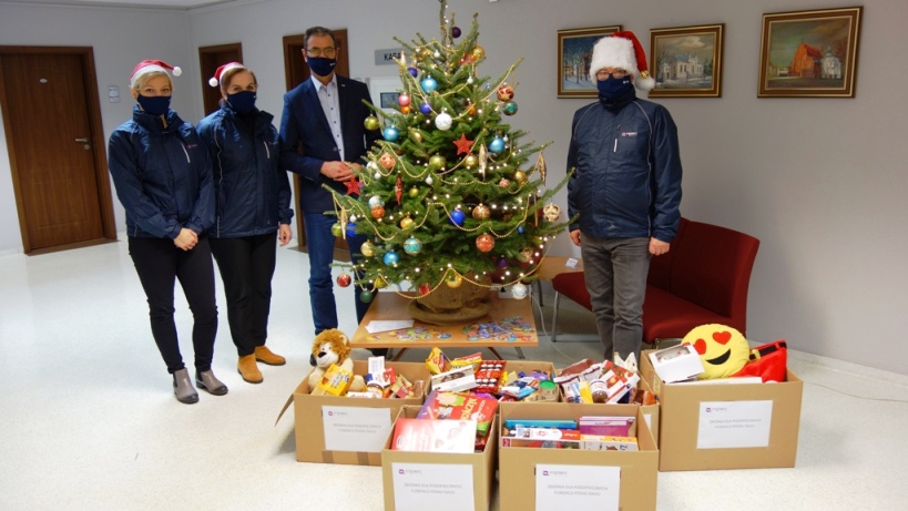Dobiegła końca akcja zbierania wśród pracowników MPEC-Konin podarunków świątecznych dla podopiecznych Fundacji „Podaj Dalej”. W piątek 11 grudnia jeszcze w siedzibie spółki odbyła się odprawa z prezesem Sławomirem Lorkiem, po czym Mikołaje z prezentami wyruszyli w drogę. Ze względów pogodowych zrezygnowano z tradycyjnych sań, ale i tak udało się dotrzeć do siedziby fundacji, gdzie czekali na nich podopieczni i pracownicy, z panią prezes Zuzanną Janaszek - Maciaszek na czele. Nie zabrakło świątecznych życzeń i chwili wzruszeń. W podziękowaniu obdarowano Mikołajów przepiękną choinką. Zwieńczeniem wizyty był tradycyjny „żółwik” na pożegnanie.