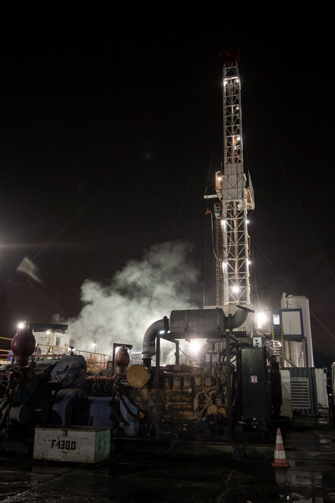 Z uwagi na nagłą i nieprzewidzianą awarię wiertniczą w otworze Konin GT-3, polegającą na zerwaniu się złączki rury okładzinowej podczas zapuszczania rur, która miała miejsce na przełomie czerwca i lipca ubiegłego roku, prace wiertnicze uległy przesunięciu. Dzisiaj można już powiedzieć, że są dosłownie „na ostatniej prostej”. To, że pora dnia nie ma wpływu na postęp robót wiertniczych, można zobaczyć na poniższych zdjęciach.