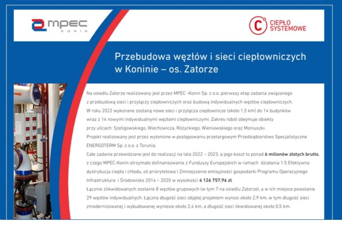 Przebudowa węzłów i sieci ciepłowniczych w Koninie – os. Zatorze.