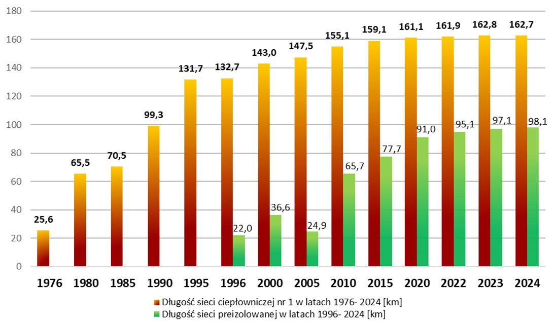 Długość sieci ciepłowniczych eksploatowanych przez Spółkę na dzień 31-12-2024r: