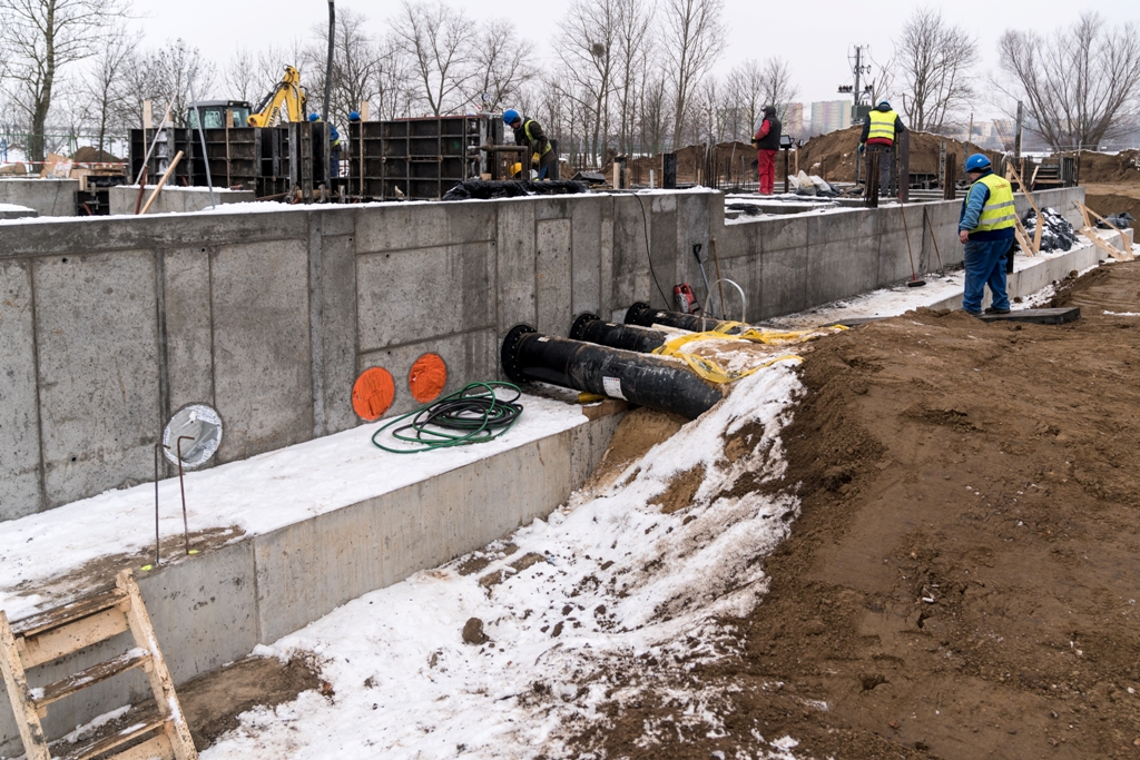 • Zgodnie z założonym harmonogramem robót po przygotowaniu placu budowy przystąpiono do budowy zbiornika żelbetowego o poj. 2000 m3 , przyłącza ciepłowniczego do magistrali przy Trasie Warszawskiej oraz budowy budynku głównego ciepłowni do poziomu „0”.