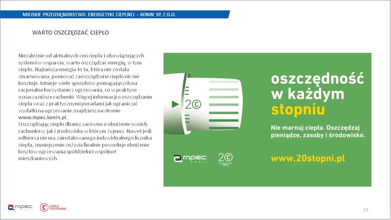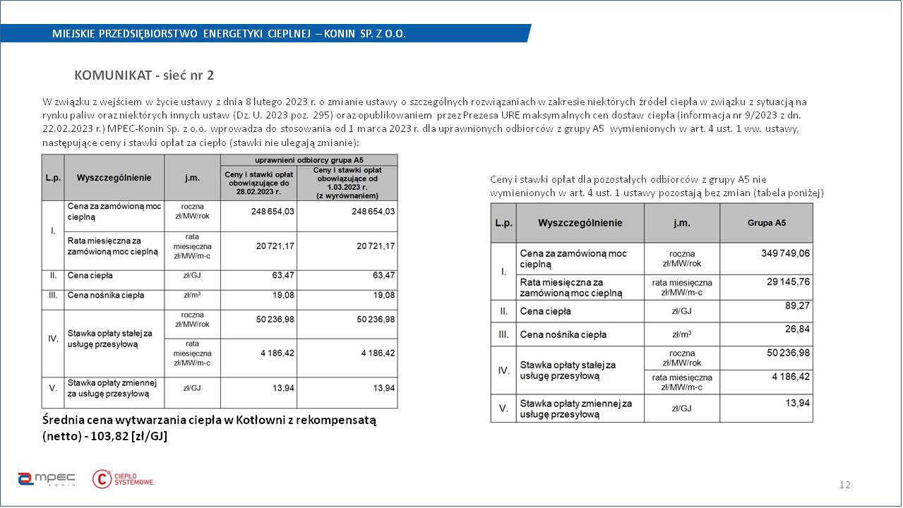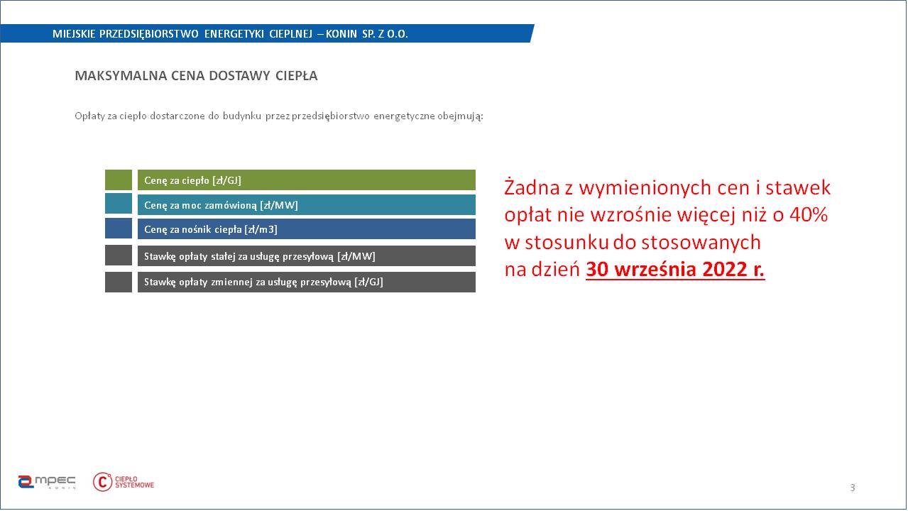 6 marca 2023 r. odbyło się spotkanie prezesa MPEC-Konin Sp. z o.o. z prezesami konińskich spółdzielni mieszkaniowych oraz zarządcami budynków dotyczące nowych regulacji ustawowych w kwestii cen ciepła. Prezes Sławomir Lorek przedstawił mechanizm maksymalnej ceny ciepła wynikający z ustawy z dnia 8 lutego 2023r.  o zmianie ustawy z dnia 15 września 2022r.  o szczególnych rozwiązaniach w zakresie niektórych źródeł ciepła w związku z sytuacją na rynku paliw oraz niektórych innych ustaw. Określono zakres obiektów mogących skorzystać ze wsparcia określonego w ustawie, jak również poziomy wsparcia dla przykładowych obiektów. O godzinie 13:00 odbyła się również konferencja prasowa poświęcona regulacjom wynikającym z wyżej wymienionych ustaw oraz ich wpływem na ceny ciepła dla mieszkańców Konina.