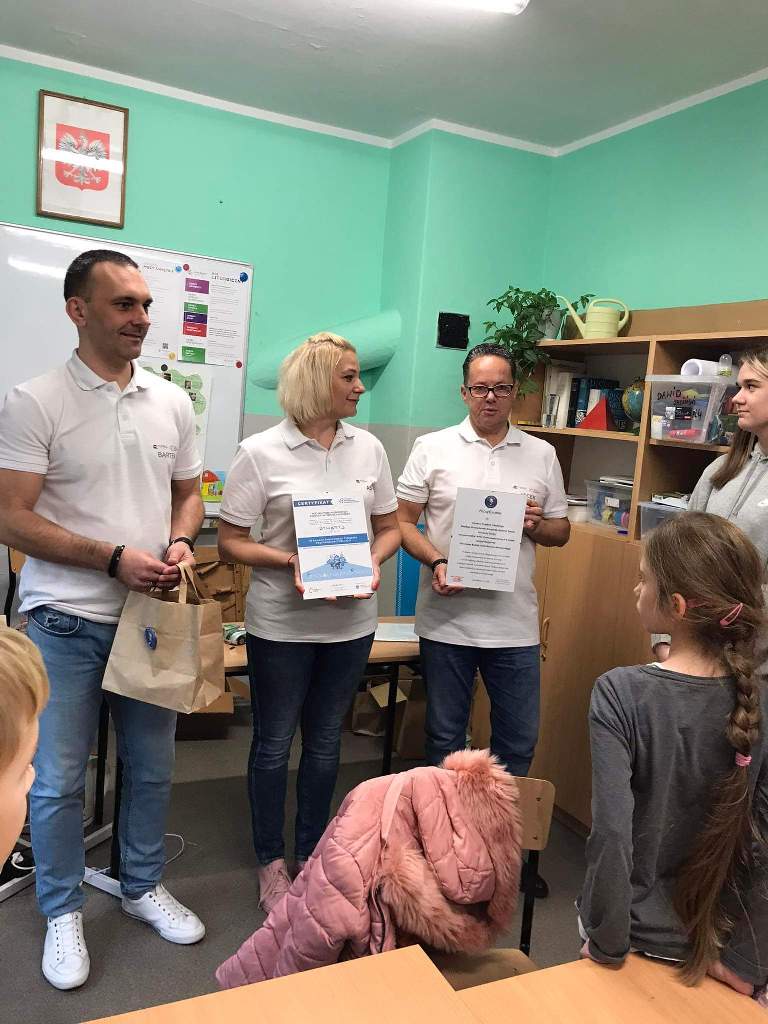 Projekt „Wielkopolskie Ciepło przyjazne środowisku – modernizacja sali edukacji ekologicznej dla Wielkopolski Wschodniej” współfinansowany ze środków Wojewódzkiego Funduszu Ochrony Środowiska i Gospodarki Wodnej w Poznaniu umożliwia prowadzenie zajęć zarówno w siedzibie MPEC-Konin, jak i w konkretnych placówkach oświatowych. 23 listopada na zaproszenie dyrekcji placówki odwiedziliśmy Szkołę Podstawową im. Janusza Korczaka w Woli Podłężnej. Wykorzystując mobilne laboratorium przeprowadziliśmy zajęcia z edukacji ekologicznej i odnawialnych źródeł energii. W zajęciach uczestniczyły dzieci oraz kadra pedagogiczna szkoły. Po części teoretycznej dotyczącej smogu oraz zielonych źródeł ciepła poprowadziliśmy część praktyczną, która cieszyła się dużym zainteresowaniem uczniów. Mogli oni na własne oczy zobaczyć jak produkuje się wodór oraz napędzany nim model pojazdu. Zdumienie wywołały również modele samochodów wykorzystujących energię wody. Do tego prezentacja instalacji wykorzystującej energię słońca (fotowoltaika) oraz wiatru (turbina wiatrowa), a wszystko dopełniła część zabawowa (puzzle, krzyżówki i rebusy) dotycząca ekologii. Jednocześnie MPEC-Konin miał okazję wziąć udział w programie „Otwarta firma” w ramach światowego tygodnia przedsiębiorczości. Na koniec podziękowania i dyplomy dla klas. Dziękujemy dyrekcji i gronu pedagogicznemu szkoły za wspaniałą atmosferę i aktywny udział w zajęciach. W przyszłym tygodniu kolejna szkoła i kolejne zajęcia z edukacji ekologicznej. Zapraszamy do współpracy wszystkie placówki oświatowe, nie tylko z Konina, ale całej Wielkopolski Wschodniej.