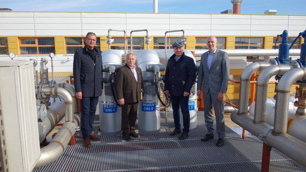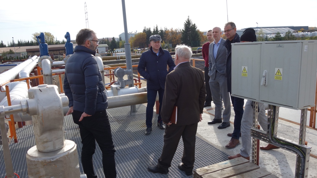 25 października 2021 r. miała miejsce wizyta Prezydenta Miasta Konina Piotra Korytkowskiego oraz delegacji MPEC – Konin Sp. z o.o. w ciepłowni geotermalnej G-TERM ENERGY Sp. z o. o. w Stargardzie. Wizyta ta miała na celu zapoznanie się z pracującą instalacją geotermalną, która w ostatnim czasie wzbogaciła się o kolejne otwory eksploatacyjne (dwa wydobywcze i dwa zatłaczające) oraz dodatkowy układ technologiczny służący do odbioru ciepła z wody geotermalnej. Doświadczenia zdobyte przez zespół eksploatujący ciepłownię w Stargardzie są cenne i będą pomocne przy eksploatacji przyszłej ciepłowni geotermalnej budowanej w Koninie, ponieważ parametry wody są dla obu lokalizacji zbliżone. Wydobywana w Stargardzie woda termalna (solanka) z utworów Jury Dolnej ma temperaturę ok. 84°C, a jej zasolenie przekracza 140 g/dm3. Wysokie zasolenie jest istotnym czynnikiem wpływającym na materiał z jakiego wykonane są instalacje i urządzenia oraz na ich bieżącą eksploatację. MPEC – Konin po raz pierwszy będzie eksploatował własne źródło geotermalne i chce wykorzystać doświadczenia zdobyte przez G-TERM ENERGY.