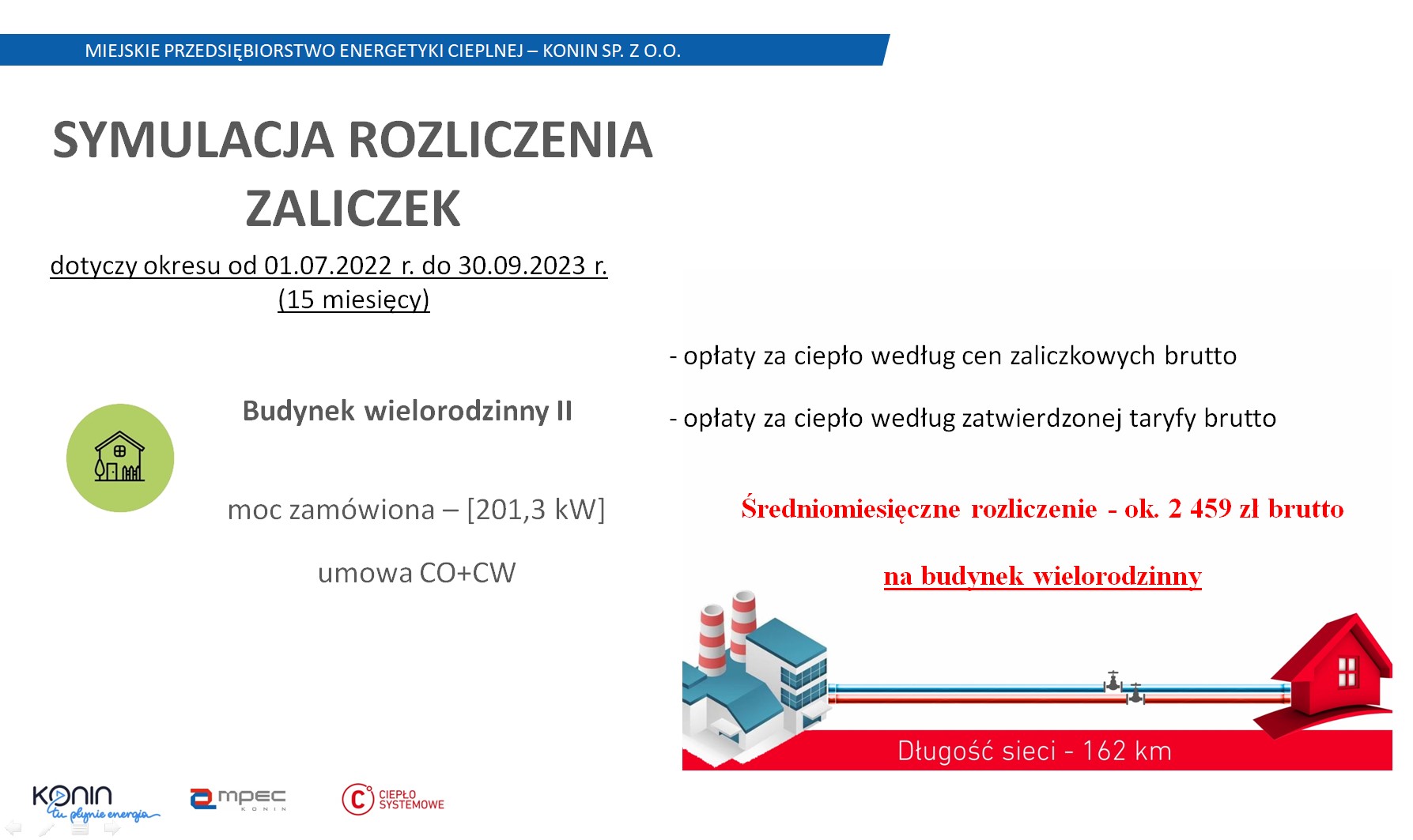 Podczas konferencji prezes zarządu MPEC-Konin Sp. z o.o. przedstawił w formie prezentacji zasady rozliczenia zaliczek za ciepło oraz symulację rozliczenia dla przykładowych odbiorców.