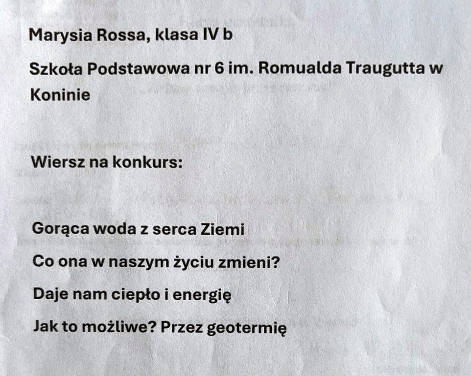 III miejsce – Marysia Rossa, klasa 4b; Szkoła Podstawowa nr 6 im. Romualda Traugutta