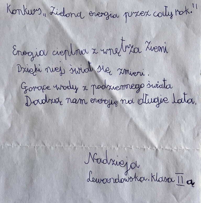 II miejsce – Nadzieja Lewandowska, klasa 2a; Szkoła Podstawowa nr 3 im. Kawalerów Orderu Uśmiechu