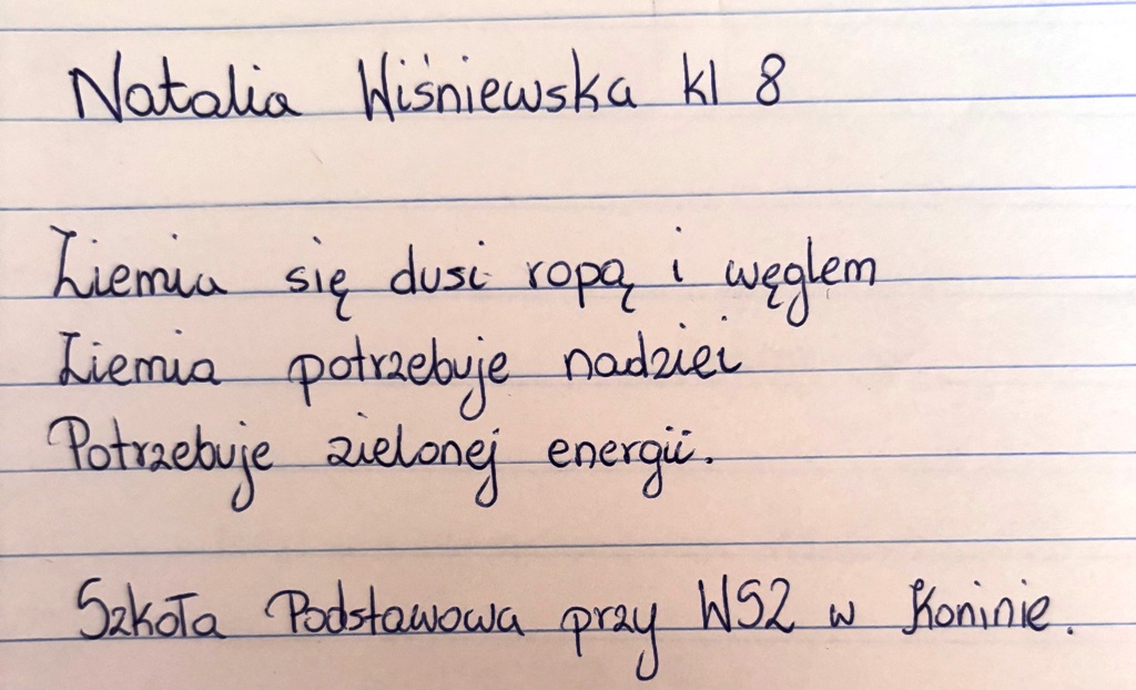 Natalia Wiśniewska, klasa 8, Szkoła Podstawowa przy WSZ w Koninie
